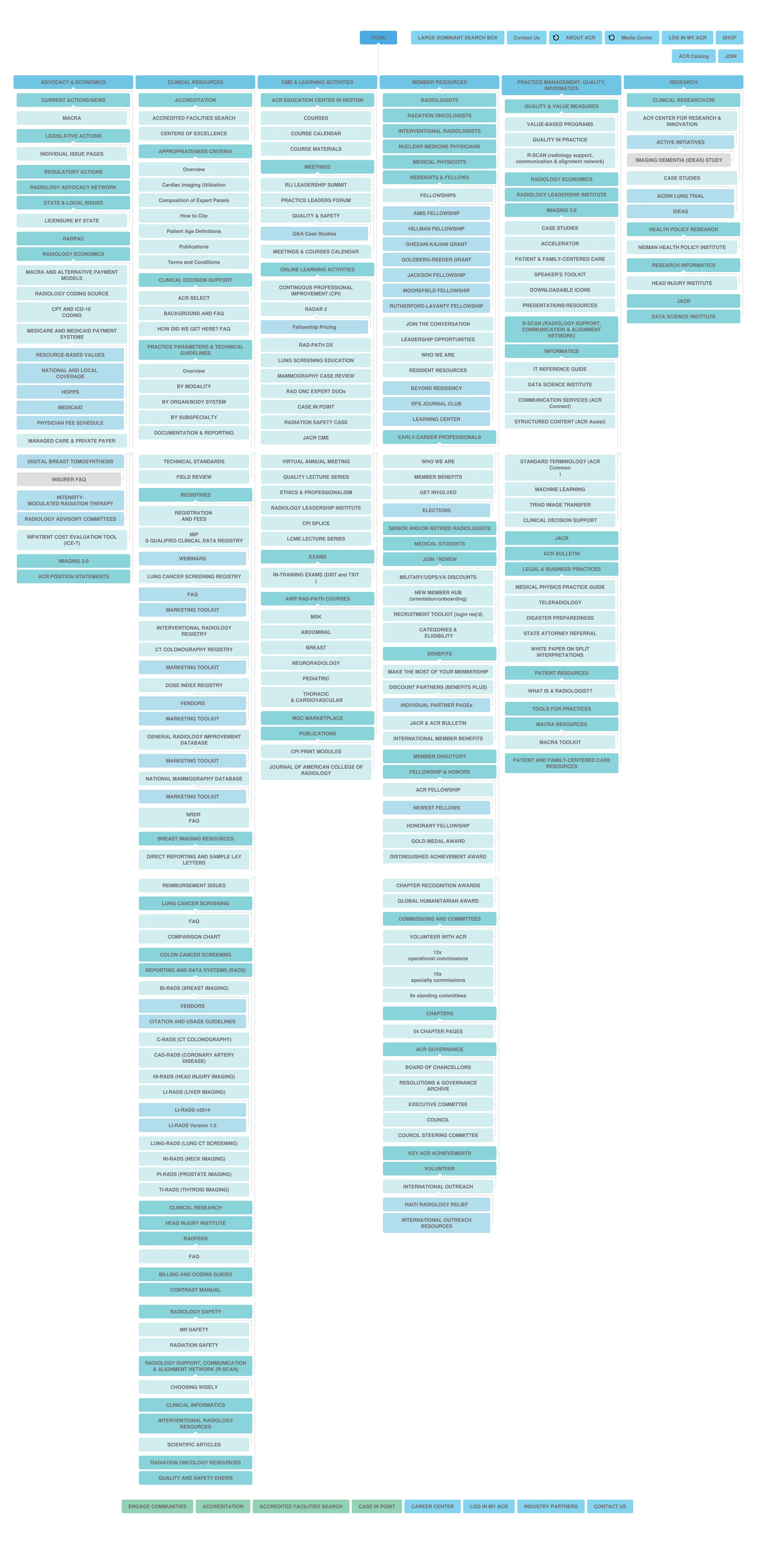American College of Radiology or ACR needed to rethink their website strategy. Their main website had grown to over 20,000+ pages of content, which was not easily browsed and was non responsive.