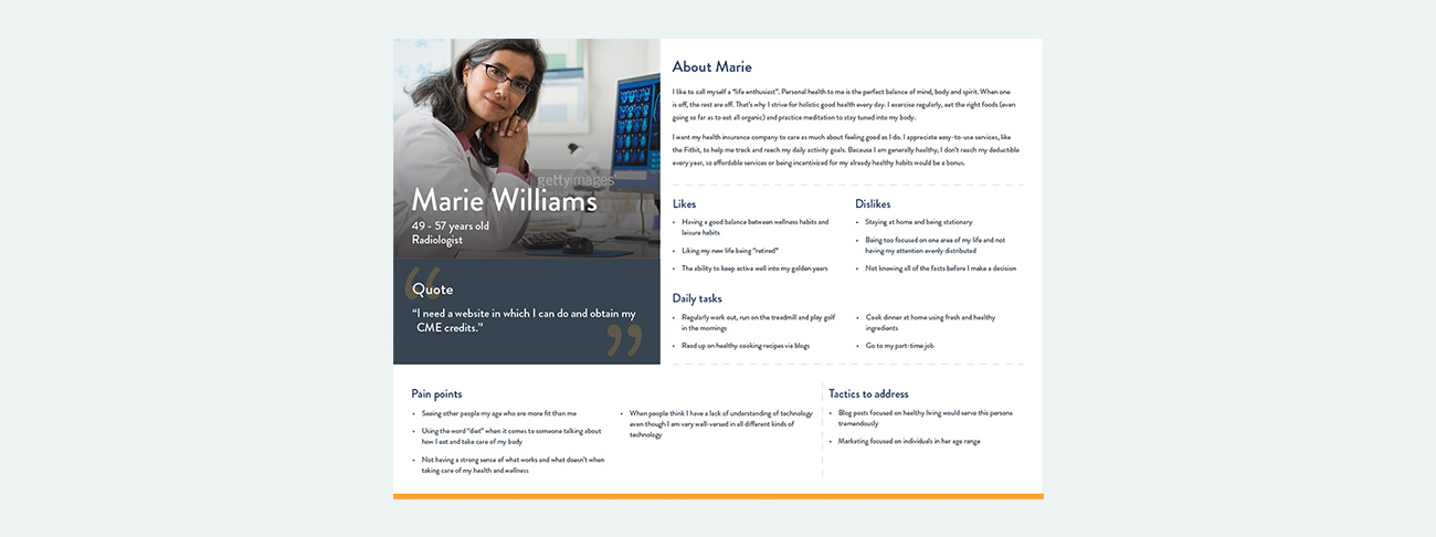 We selected 4 stakeholders from the 35,000+ membership base with varying backgrounds and website experience. Based off of those interviews, we obtained a good idea of what they don’t like about the current site, what the perfect site would be for them, how they interact with their competitor’s sites, and in their minds what success looks like.
