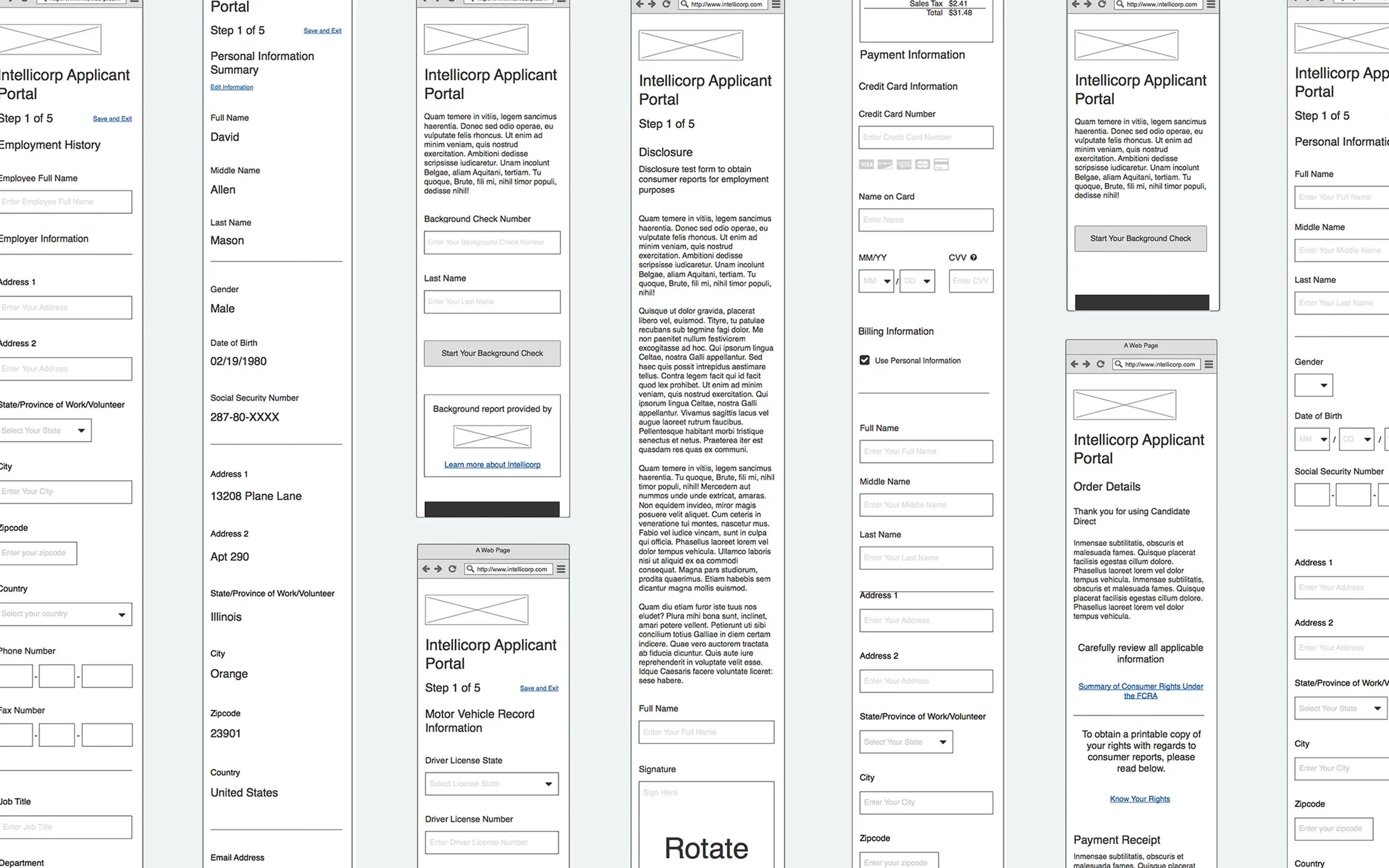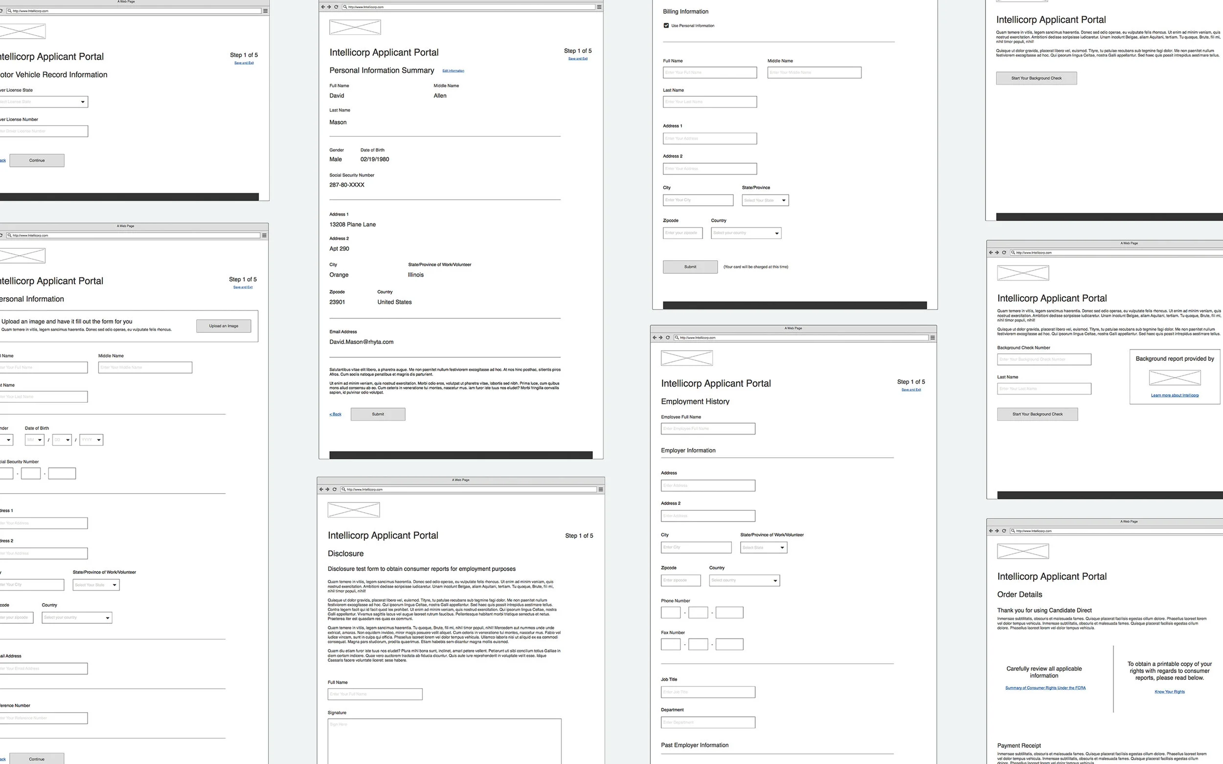 Intellicorp, a background screening investigation company, brought me on board to identify and fill any gaps in their background screening process, for both employer and client users. I was able to improve it by creating a portal which allows applicants to enter their information, schedule a drug screening appointment, and pay all in one place at one time. Not only did this make for a more user friendly and efficient applicant experience, but it also eliminated the need for Intellicorp “runners” to physically visit local clinics to collect payment and drug screening results, saving them time and money.